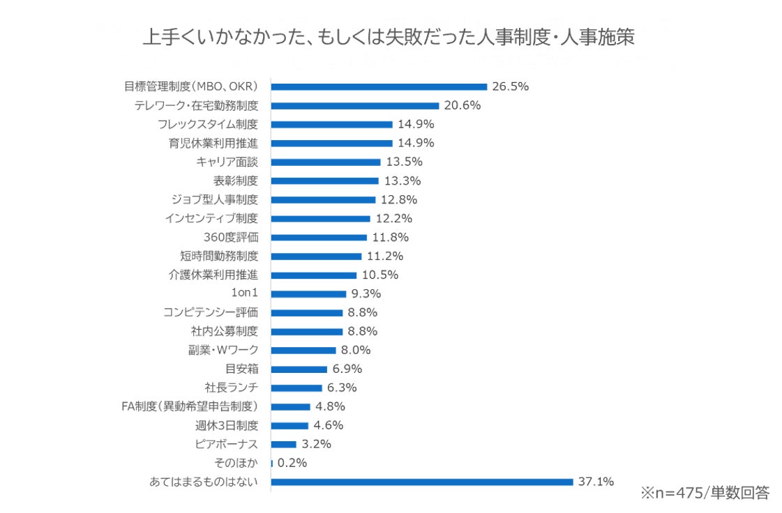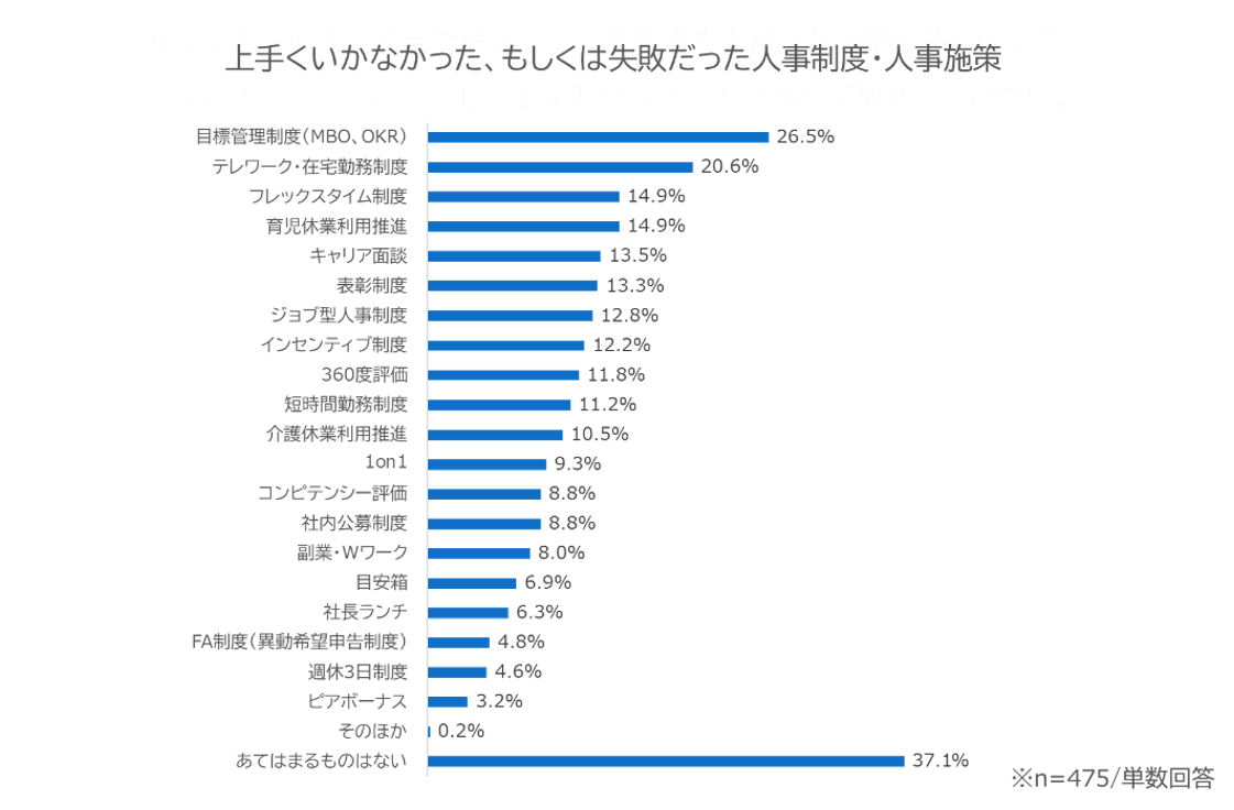 ・導入して失敗したと感じる人事制度・人事施策の1位は「目標管理制度」