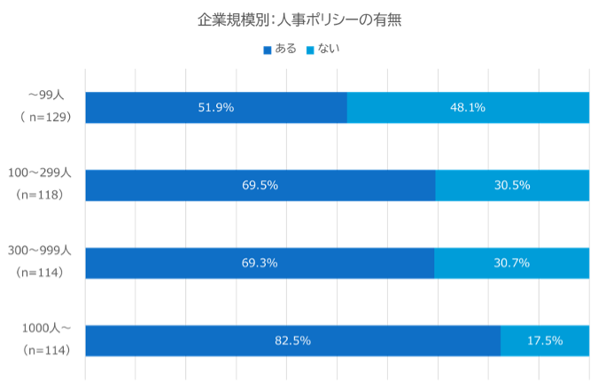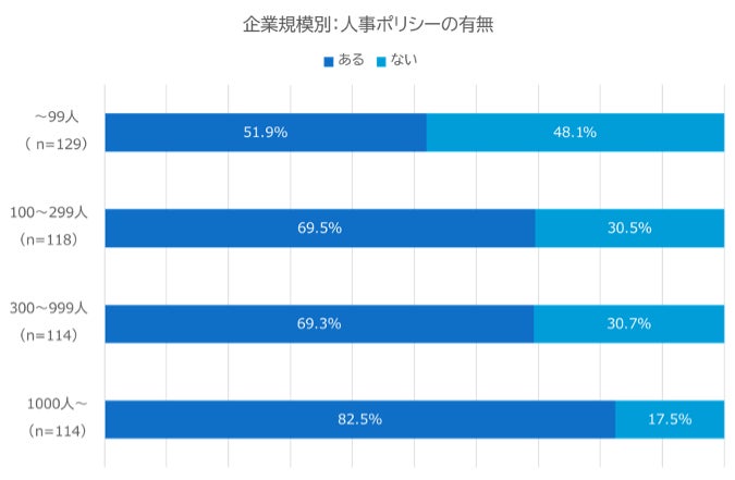 今回の調査で、約7割の企業で人事ポリシーが策定されているという結果が得られた。