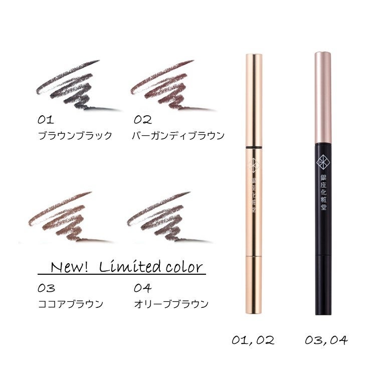 「03:ココアブラウン」は、やわらかいくすみをプラスした抜け感のあるココア色のブラウンに、「04:オリーブブラウン」は、赤みと黄みのバランスを調整し暗すぎず透明感のある自然なカーキに調整しました。秋冬に柔らかい印象をつくるヌーディメイクでも、アイラインが密着して印象的に目ヂカラを魅せてくれます。