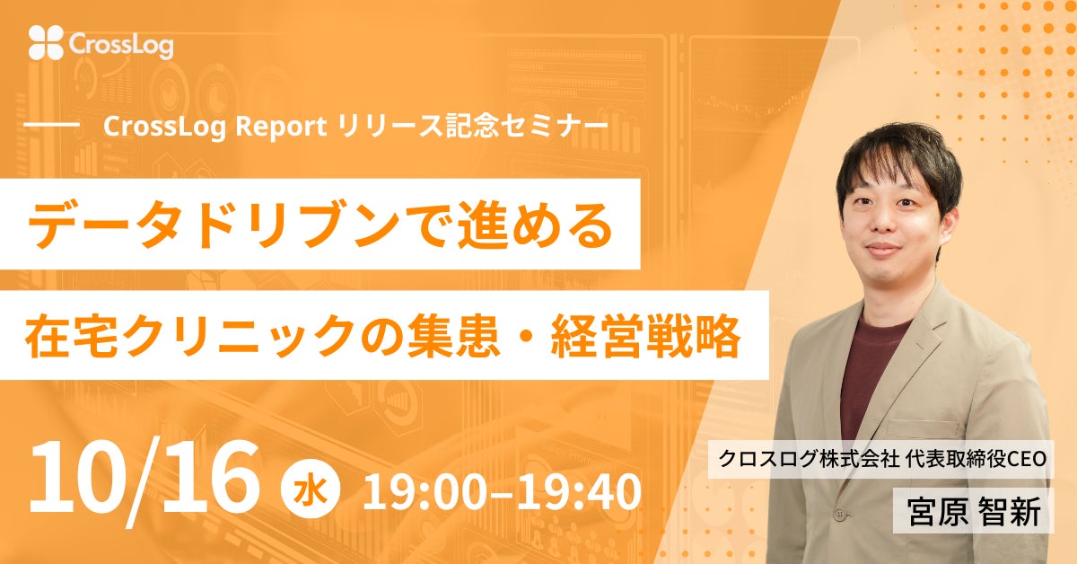 新サービスのリリースを記念して、CrossLog Reportのデータを活用した集患・経営戦略の手法について、クロスログ株式会社 代表取締役CEO 宮原智新よりご紹介します。