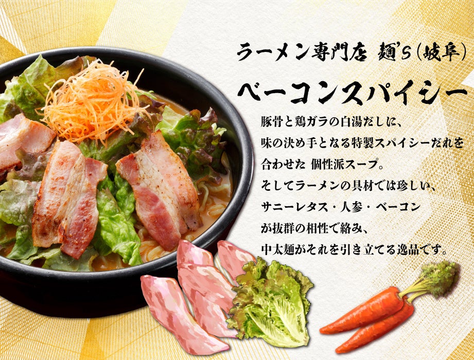 岐阜県「ラーメン専門店 麺’s 」ベーコンスパイシー(880円)