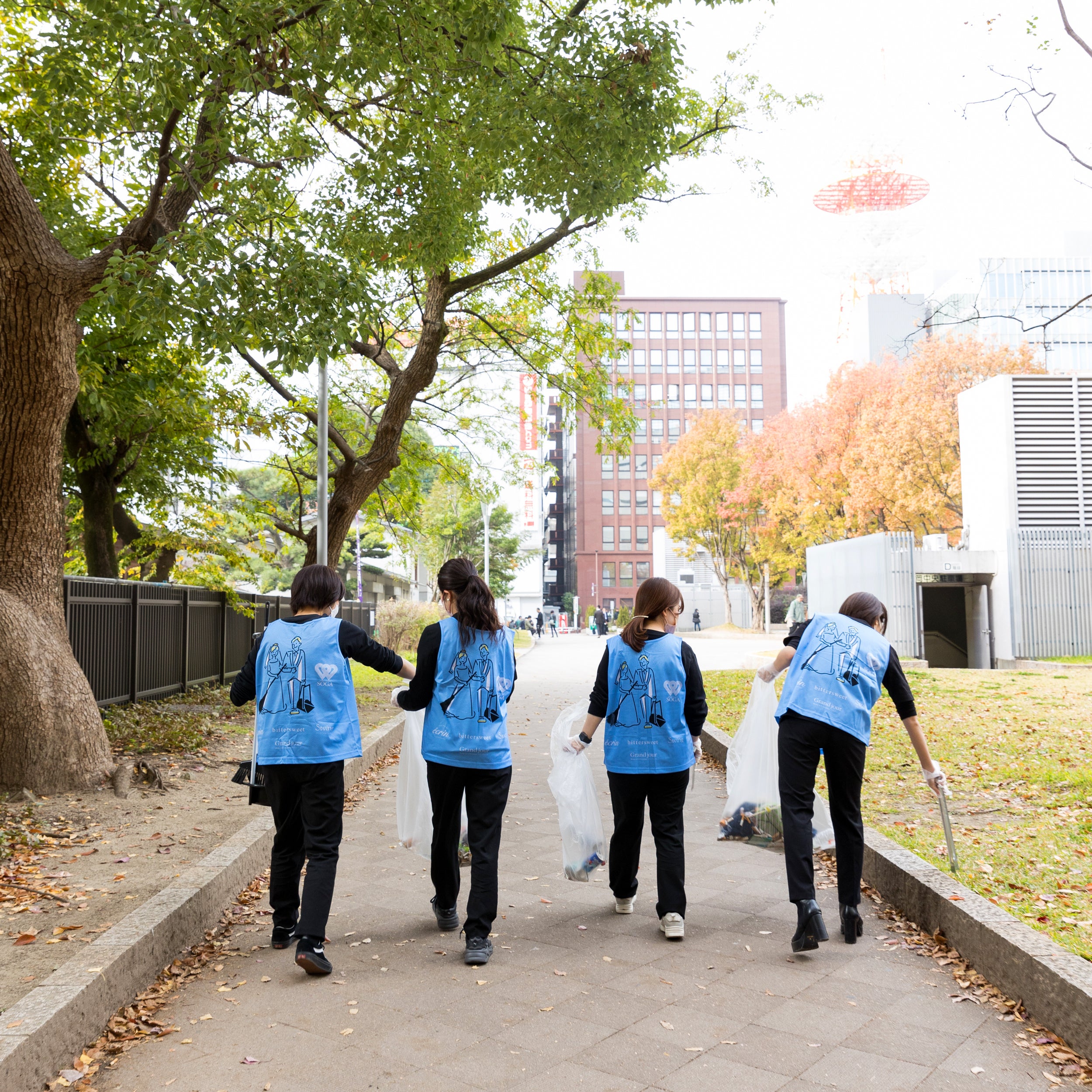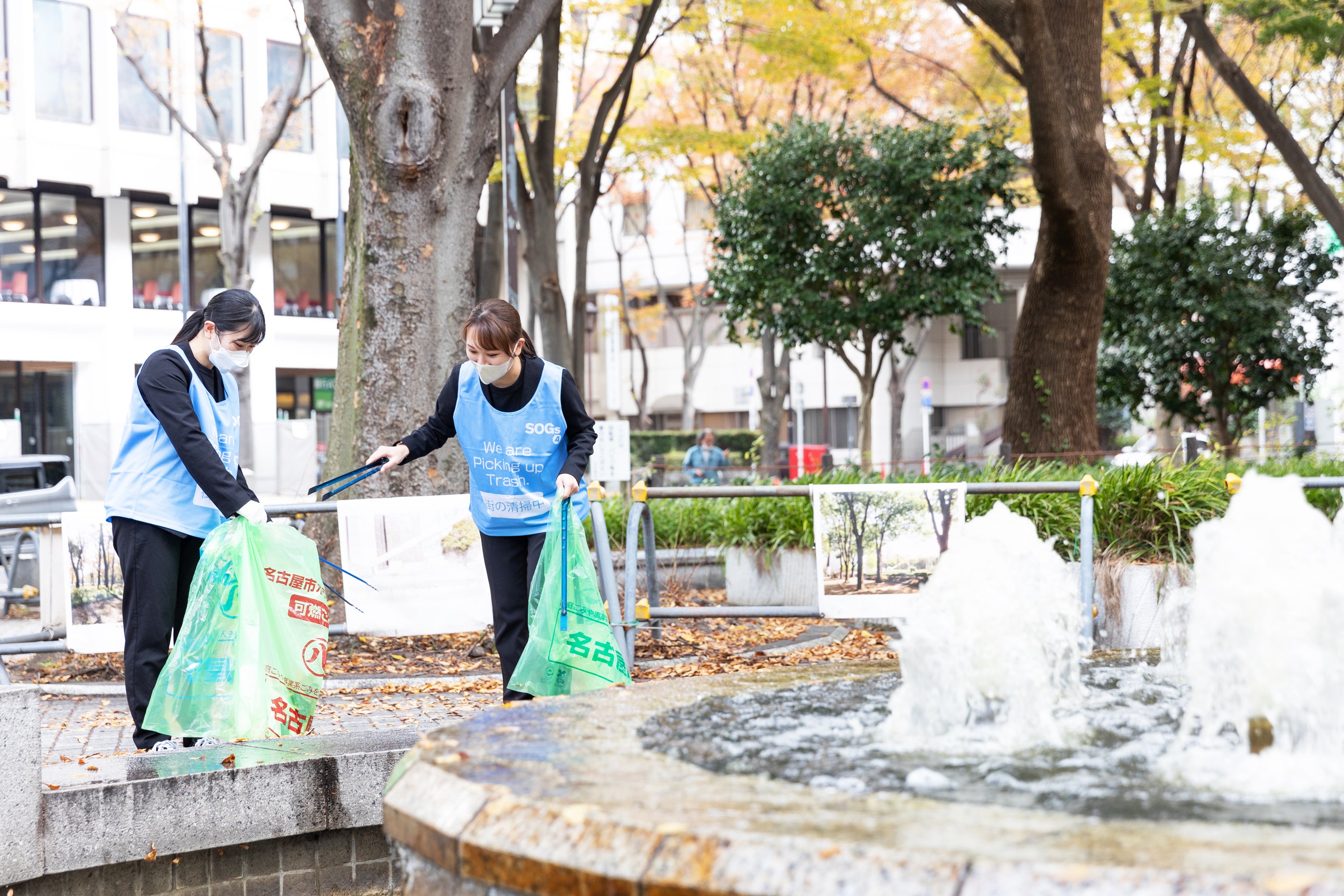 隠れ家的カフェや美術館・博物館も集まるアカデミックな街「伏見」。地下鉄伏見駅から歩いてすぐの名古屋店は、錦通や白川公園、名古屋市科学館周辺のおよそ2キロメートルに渡って、地域清掃を行いました。天候も快晴、気持ちの良い晩秋の日差しの元、街の方からも「清掃ありがとう」のお声がけをいただくなど、清々しい活動時間となりました。