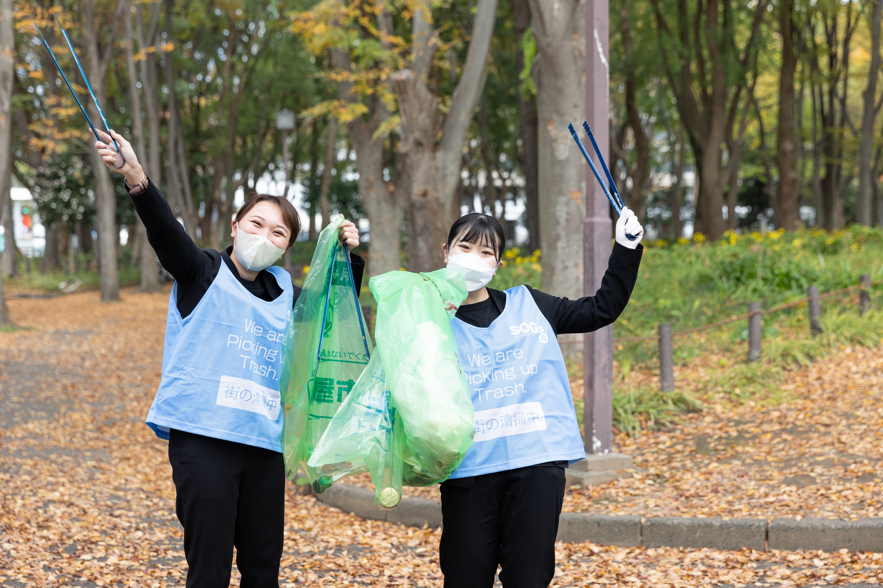 清掃の成果は、タバコの吸い殻、ペットボトル、空き缶など、45リットルのゴミ袋で1つ半。今回までに活動を行なった5つのどの都市よりも少ない結果に。想像よりはるかにゴミは少なかったものの、大通りや大きな公園は特にタバコの吸い殻が多く落ちており、地域清掃を実施することでポイ捨ての抑制にも繋がってほしいという想いが生まれました。今後は地域の方とのコミュニケーションを取り入れ、安全で美しい“もっと足を運びたくなる”街づくりに貢献してまいります。