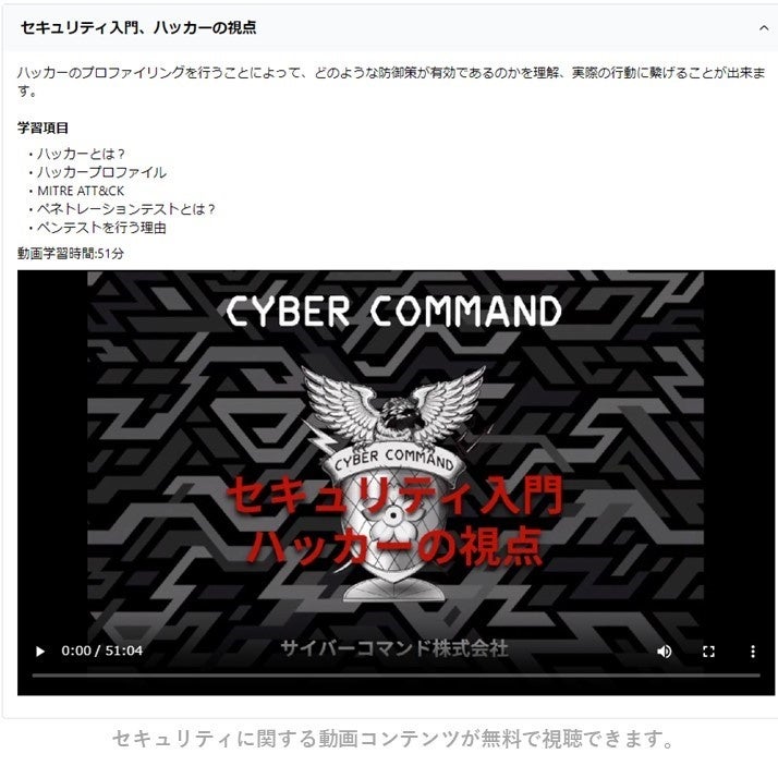・サイバーセキュリティの動画学習コンテンツを無料で視聴可能に