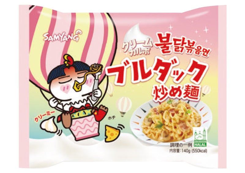 大人気の激辛シリーズ。プルダック炒め麺の最新味のクリームカルボ味です。通常のカルボ味より、生クリーム感とチーズ感が増した、まろやかな味がクセになる一品。