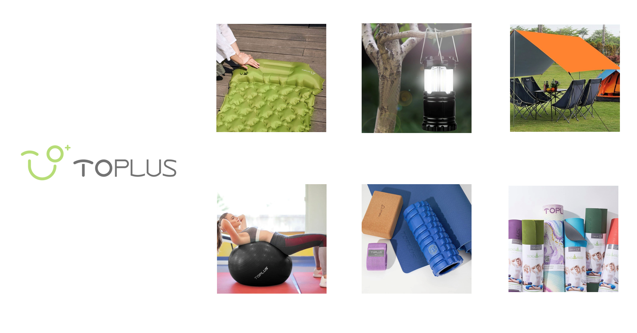 "全世界ユーザー66万人"の実績を誇るグローバルヨガブランドTOPLUSの 【TPE6mmヨガマット】は屋外でも屋内でも使用できる万能持ち運びマット、たった3cmの厚さでもしっかりと身体を支える【エアーマット】や急な雨でも安心な防水仕様の【3×3m タープテント】など、どこにいてもスポーツ・アウトドアを楽しめることができるアイテムを揃えています。