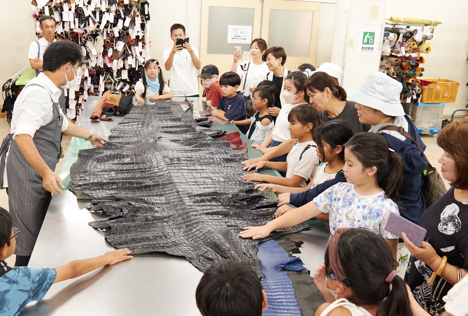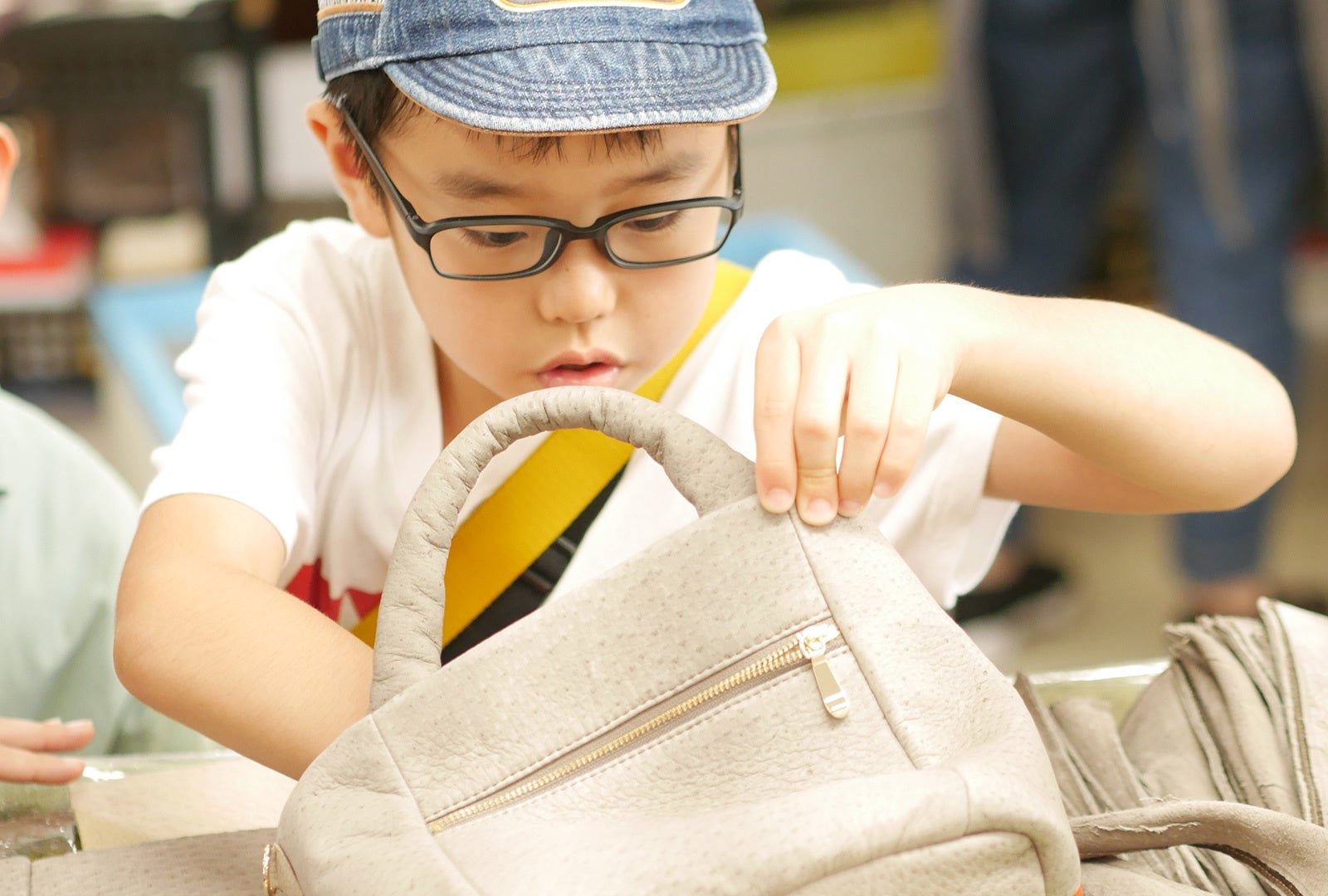 普段は見られない工場の裏側を大公開。職人が一つ一つ丁寧にバッグを作り上げる様子を間近で見られる貴重な機会です。子どもたちからは「すごい!こんなふうに作るんだ!」と感動の声があがりました。