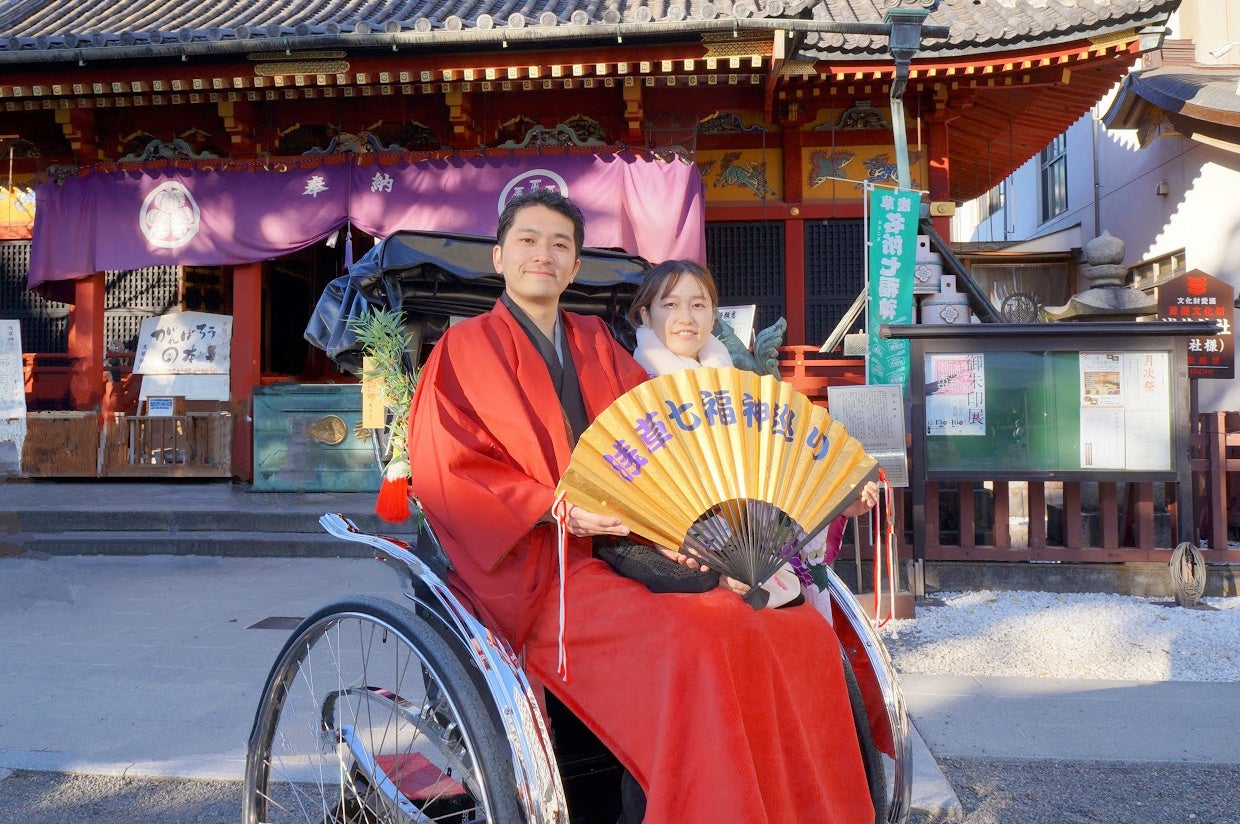 新たな年の良運を招こう!〜特別仕様の人力車(開運七福神号)に乗って七福神巡り~9寺社が揃った御朱印色紙プレゼント付き