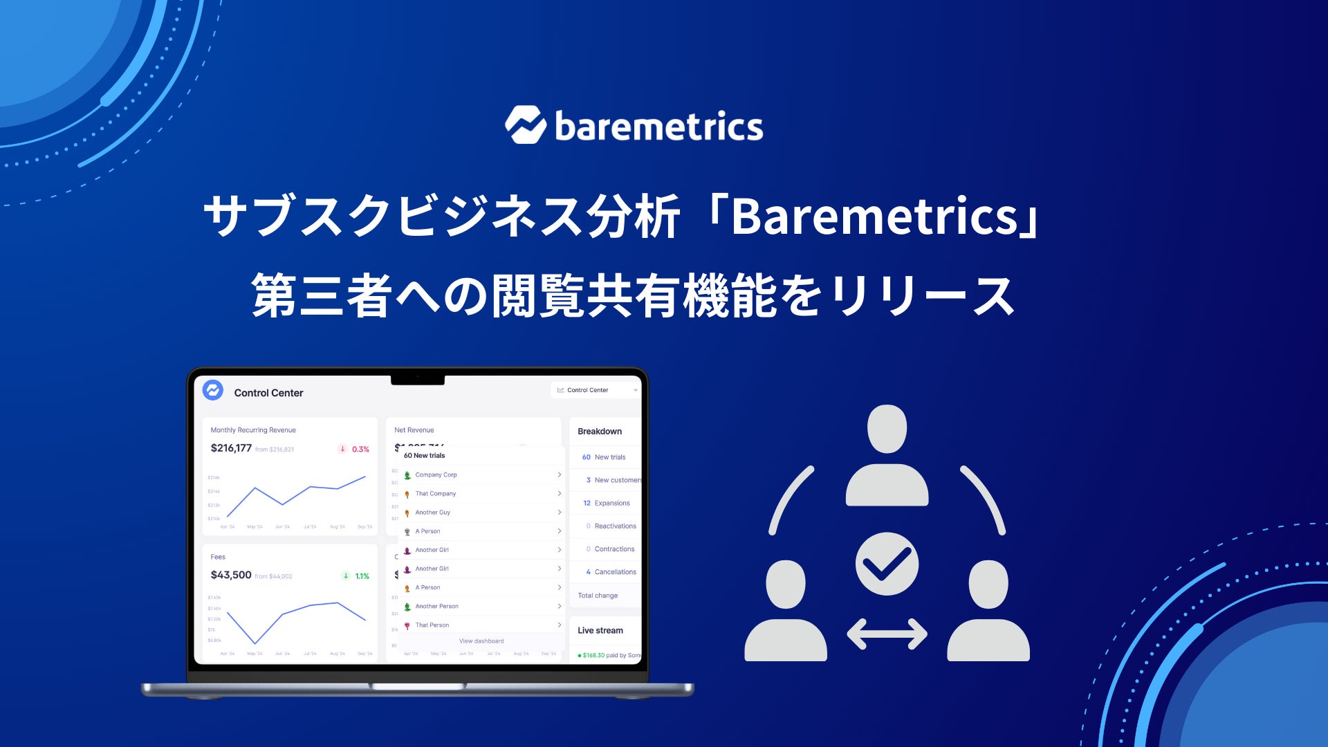 サブスクビジネス分析「Baremetrics」が第三者への閲覧共有の新機能をリリース