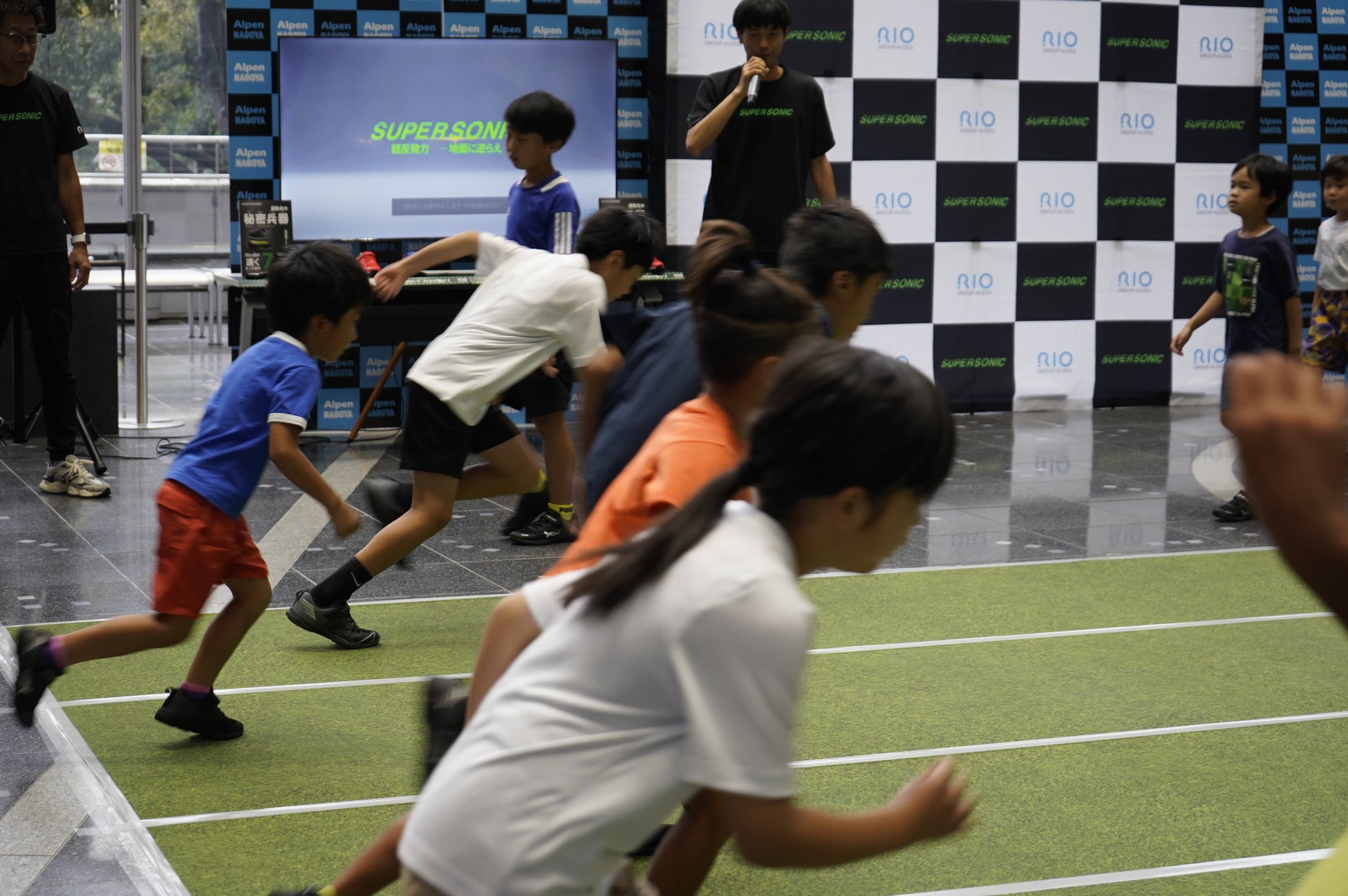 かけっこ教室は、「SUPER SONIC」を実際に試し履きできる体験型イベントとして、走り方のレクチャーや実践を通じて、子どもたちの「走る力」を引き出します。正しい走り方に加え、靴選びの重要性など「足育(あしいく)」についても学べる、親子に大変好評のイベントです。