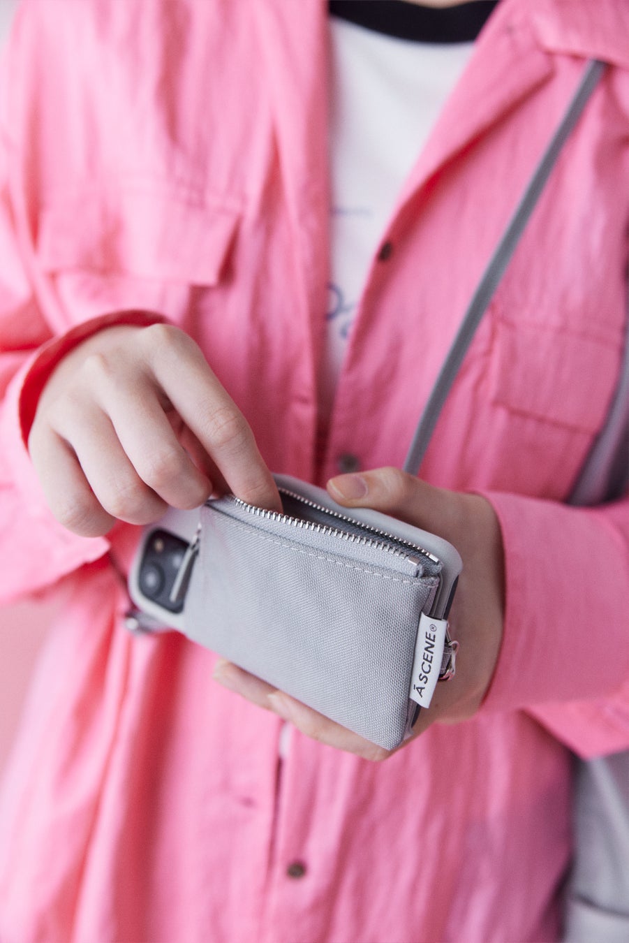 ワントーンでシンプルにデザインされたケースは、取外し可能なポケットやショルダー等機能的な一面を携えながら、フォーマルやカジュアルなど様々なシーンでファッションを楽しむことができます。