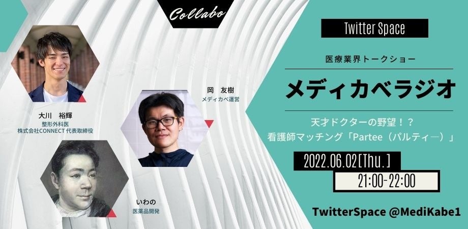 メディカべは、医療業界の情報交流を活性化するために、『メディカべラジオ』 をTwitterSpaceにて定期的に開催します。