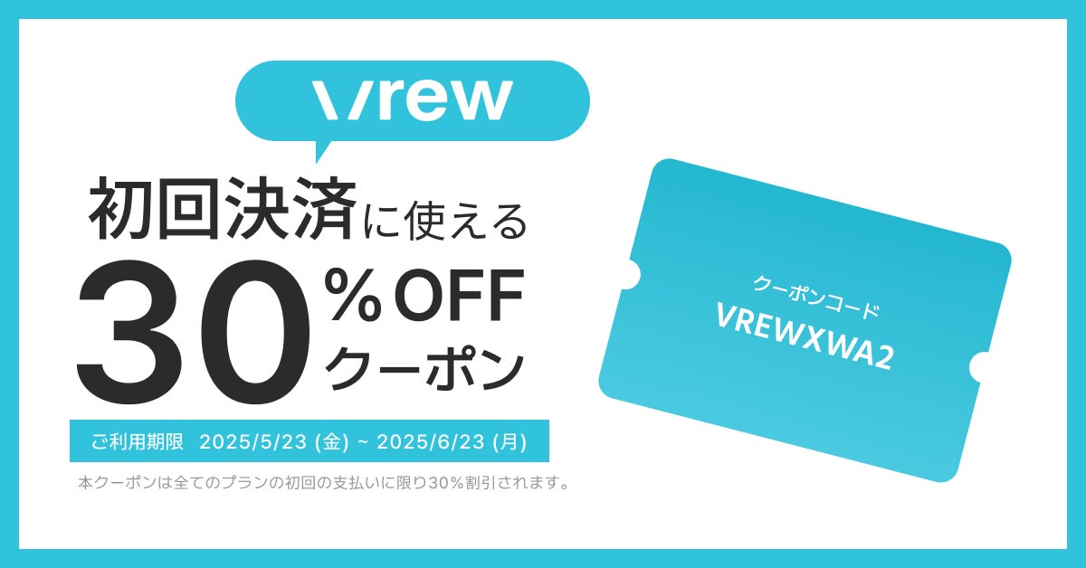 ~「Vrew」30%OFFインタビュー記念キャンペーン実施決定~