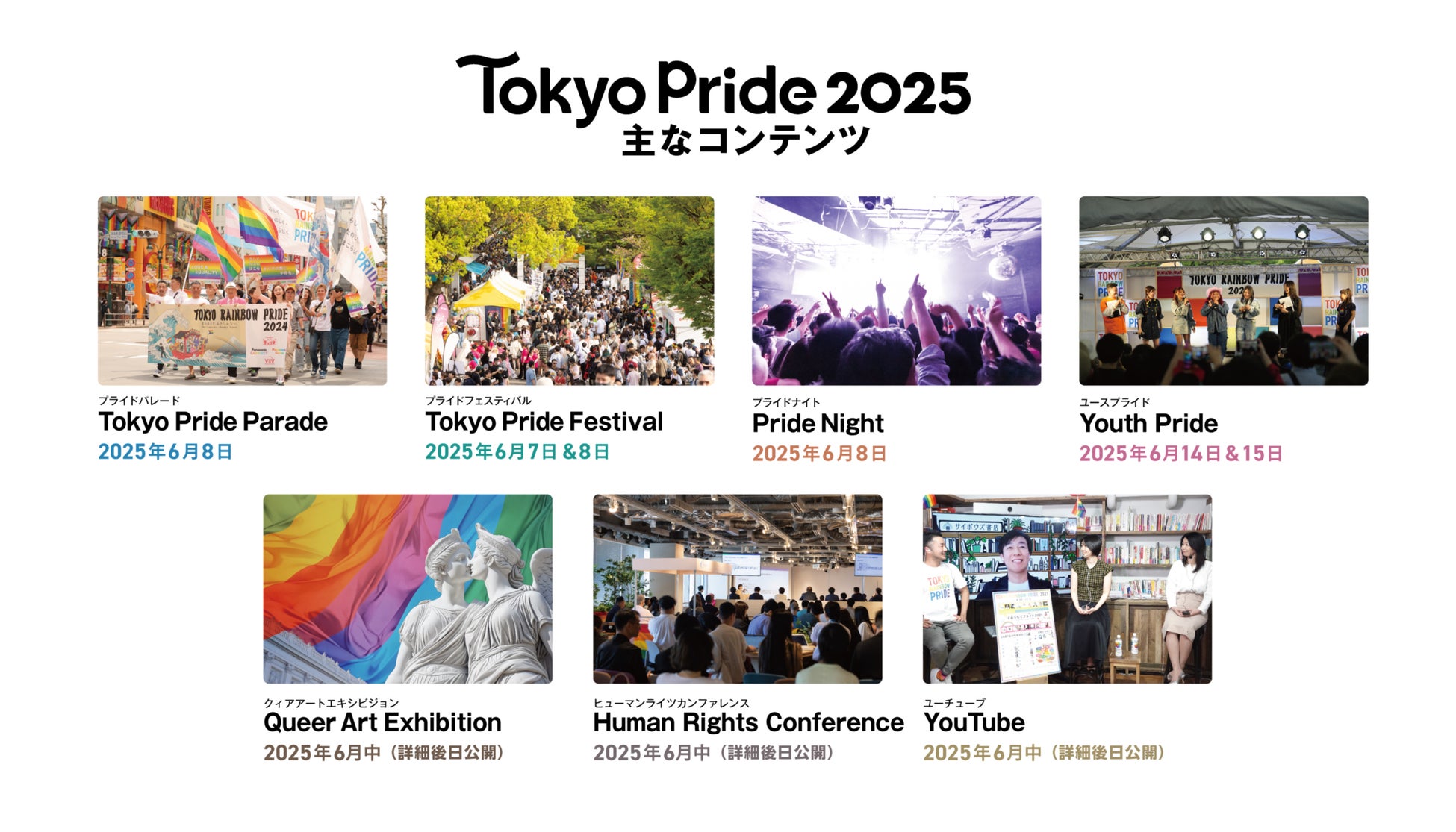なお、例年4月に開催してきたプライドパレード & フェスティバルは、2025年6月7日(土)・8日(日)に代々木公園にて開催を予定しています。