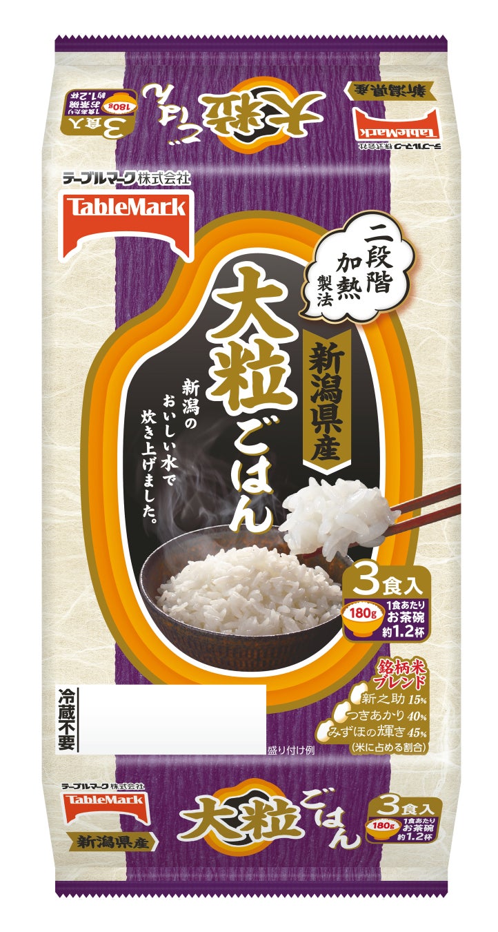 さらに、同じく22年春のパックごはん新商品で、新潟で収穫された大粒の銘柄米「みずほの輝き」「つきあかり」「新之助」を厳選し、新潟のおいしい水で炊き上げた「新潟県産 大粒ごはん3食」もグランプリを受賞しました。