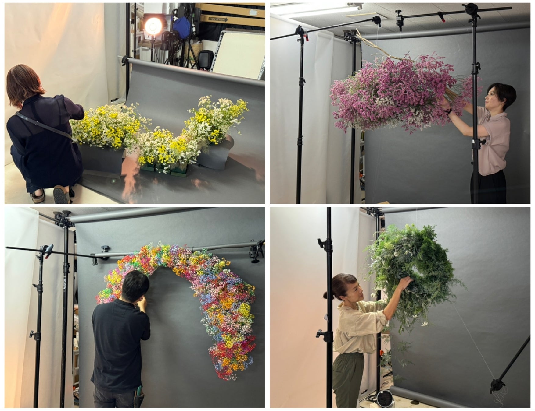今回の制作には、生成AI画像を作成するグラフィックデザイナー、日比谷花壇グループのフローリスト、カメラマン、生成AI画像と花画像を合成するデザイナーの総勢19名が携わっています。