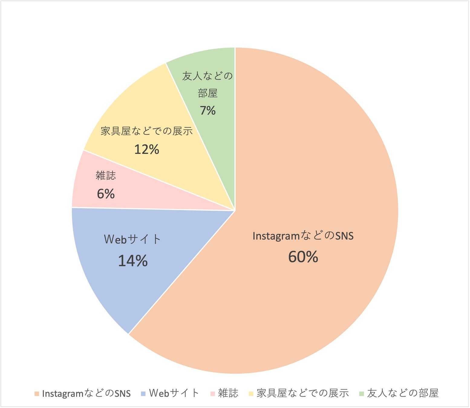 実店舗(12%)や雑誌(6%)を利用する方は少数である。「学生×家具・インテリア」などで情報発信する方はこのことに留意して置かなければならないだろう。