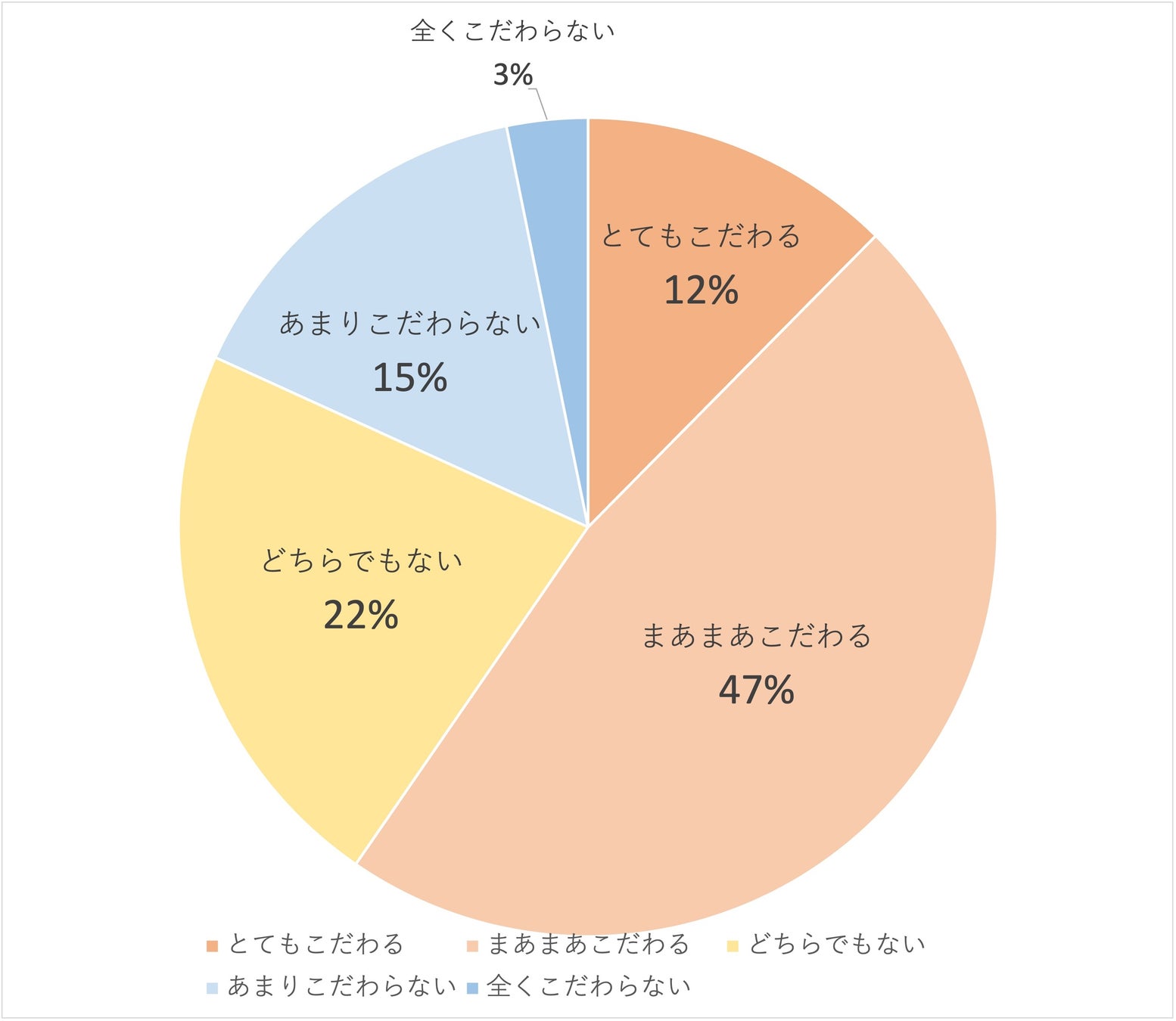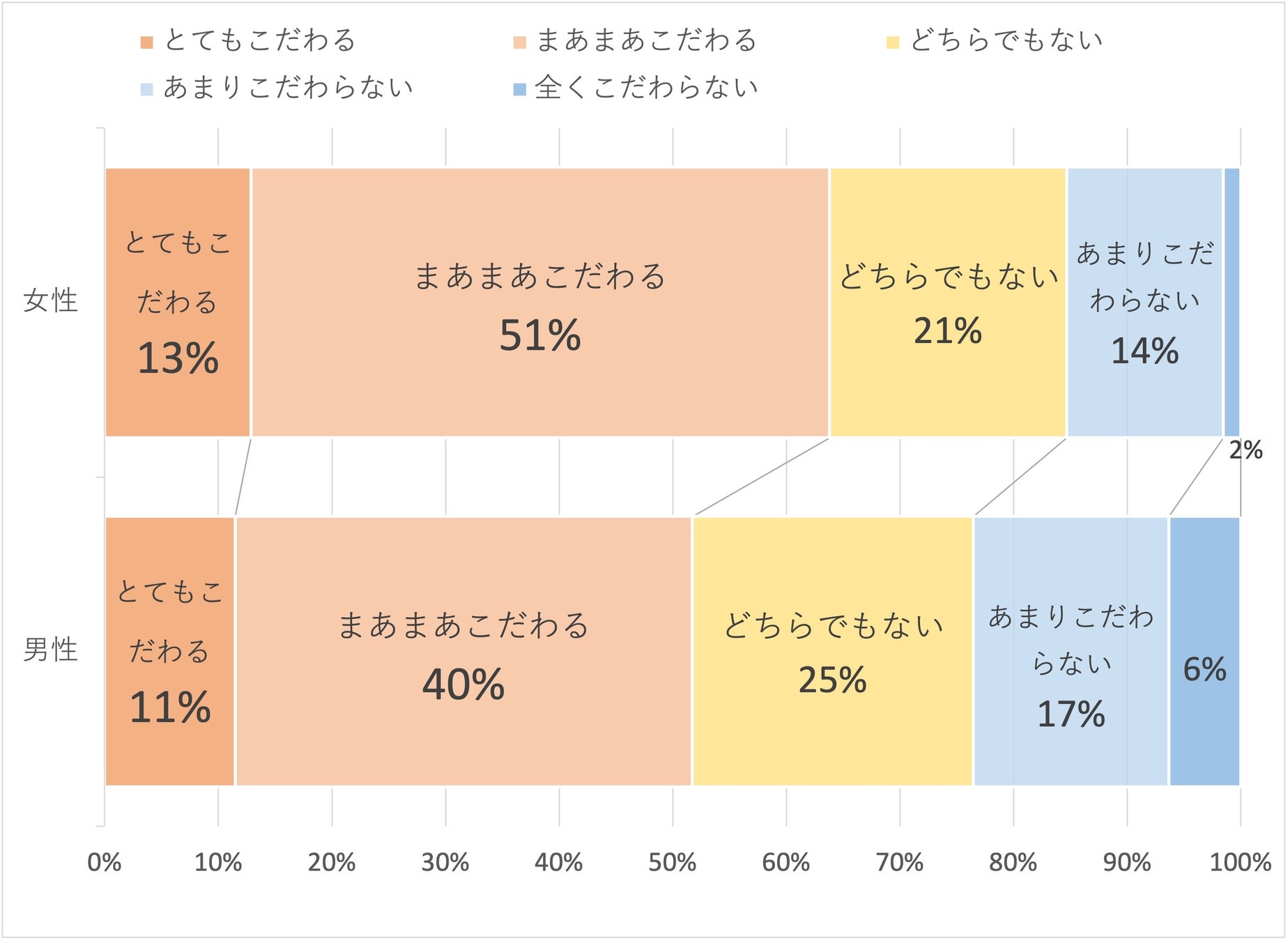 女性の方が「とてもこだわる・まあまあこだわる」と回答した方がやや多かったが、大きな差はないようだ。