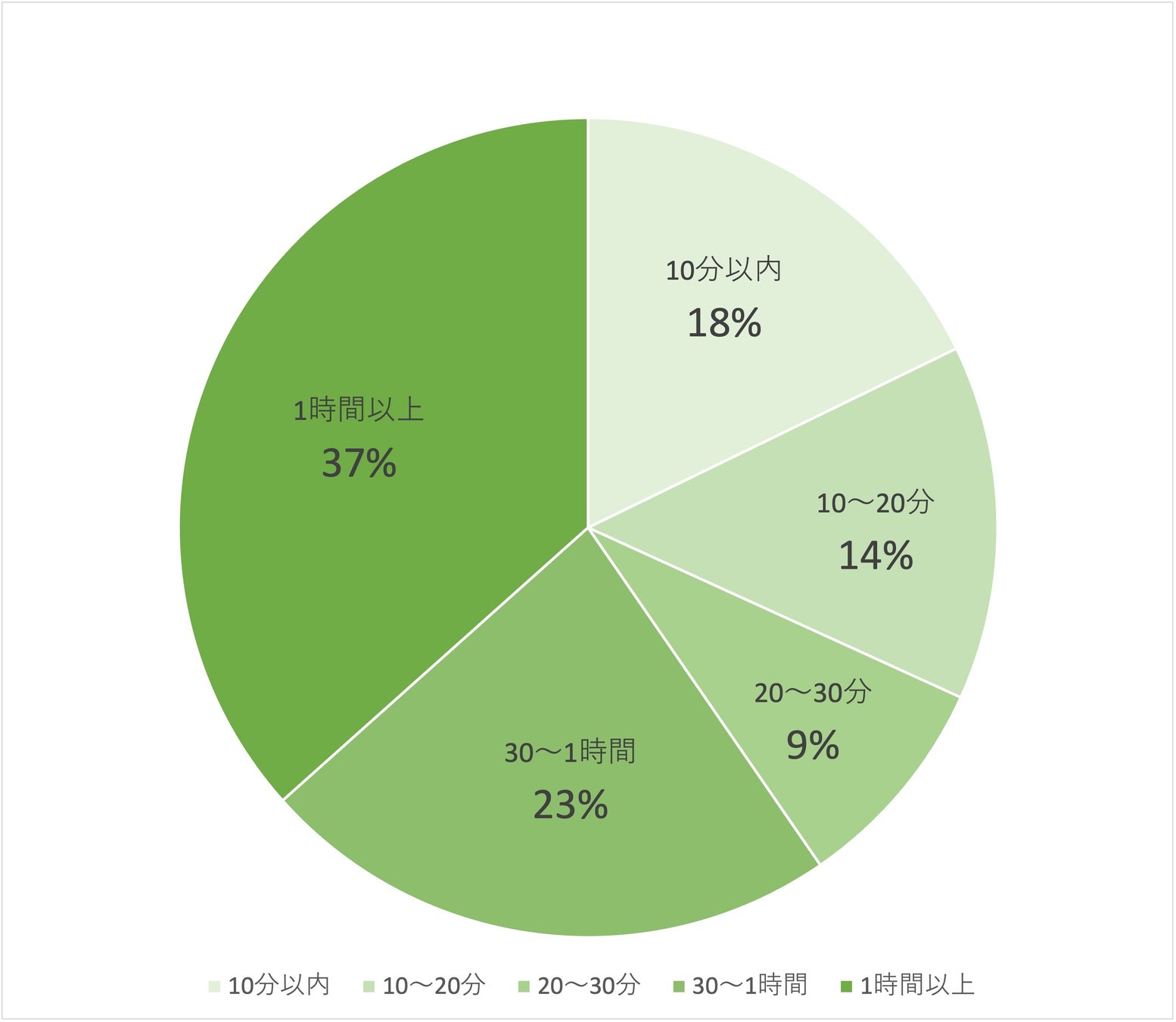 上述した、「実家:下宿」とほぼ同じ比率となっており、通学にかける時間は実家暮らしの方が30分以上、一人暮らしの方が30分以下という目安になりそうだ。