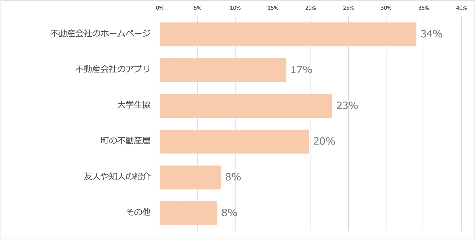 物件探しと聞くと、有名サイトや会社を利用するイメージが強いが、大学生協や町の不動産屋を利用する方も一定数いるようだ。