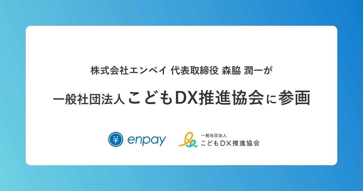 集金業務のキャッシュレス化・DX化を実現するFintech×SaaSプラットフォーム『enpay(エンペイ)』を提供する株式会社エンペイ(本社:東京都港区、代表取締役:森脇 潤一、以下エンペイ)は、「一般社団法人こどもDX推進協会」の設立に参画し、理事に当社代表取締役CEO/Founder・森脇 潤一が就任することをお知らせいたします。