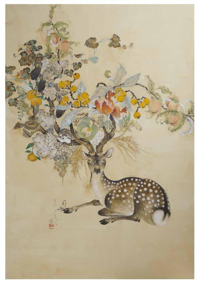 展覧会タイトルにある「ムスヒ」とは、天地や万物を生み出す神のことです。伊藤若冲や四条円山派などの江戸絵画を引用し、八百万の神々や妖怪、日本書紀の神話などをモチーフにしたフジイフランソワの絵画は、精緻でありながら、見る者が思わずクスっと笑ってしまうようなユーモアを含んでいます。本展では、自然と人間や動植物とのつながりや、太古の神々と人間とのつらなりを感じさせるフジイフランソワの日本画を紹介いたします。日本の豊かな風土や歴史が育んできた、自然や物に神性を見出し、神々と寄り添って生きてきた私たちの価値観を問い直す機会となれば幸いです。