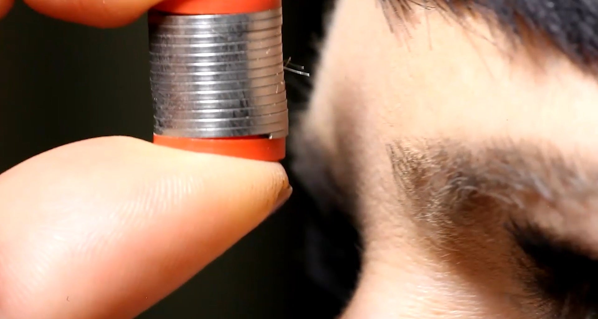 ①人差し指と親指でつまんで接地面にfacyyを当てて毛を掴みます。