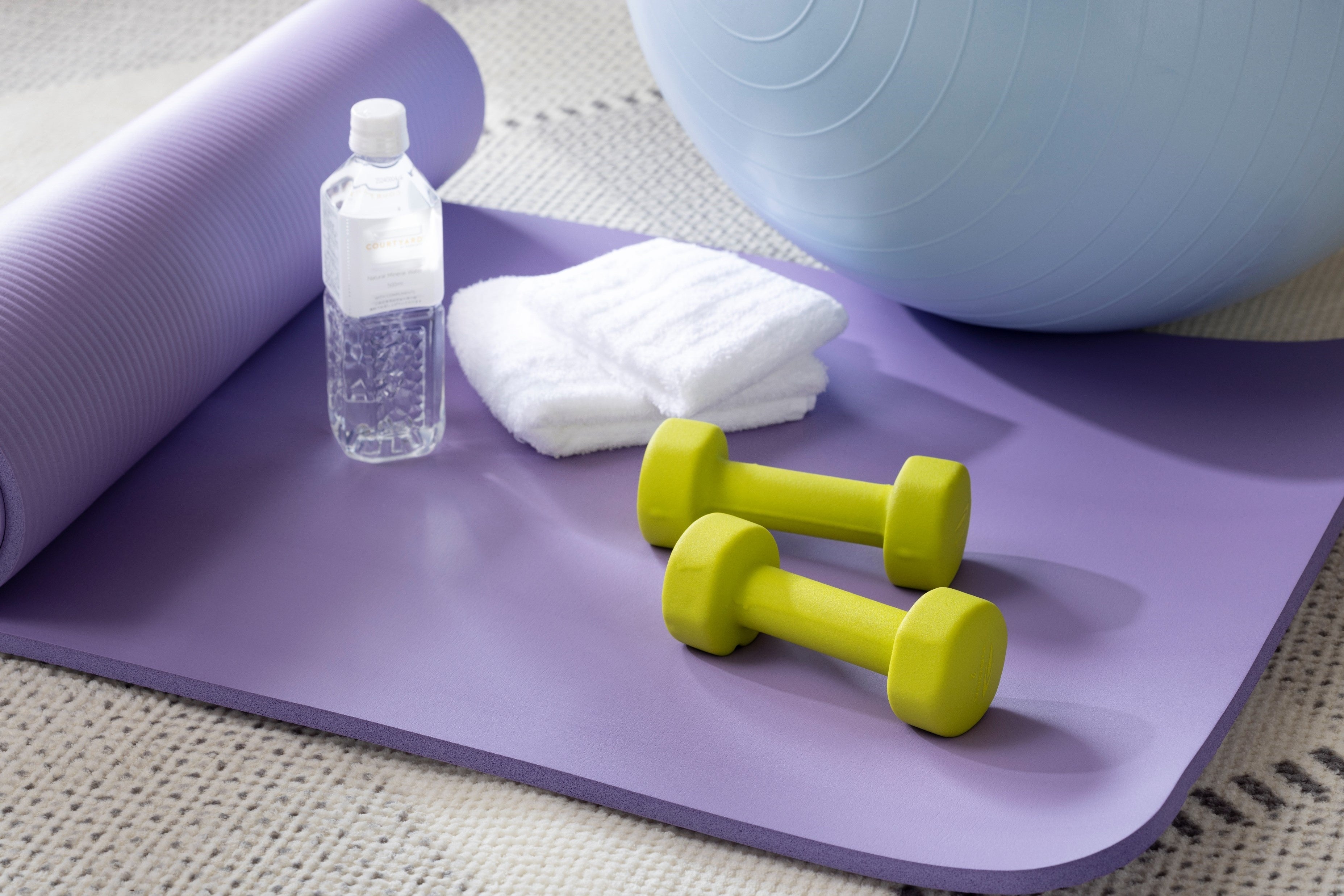 客室備品:ヨガマット、ダンベル2種(1㎏/2㎏)バランスボール1個