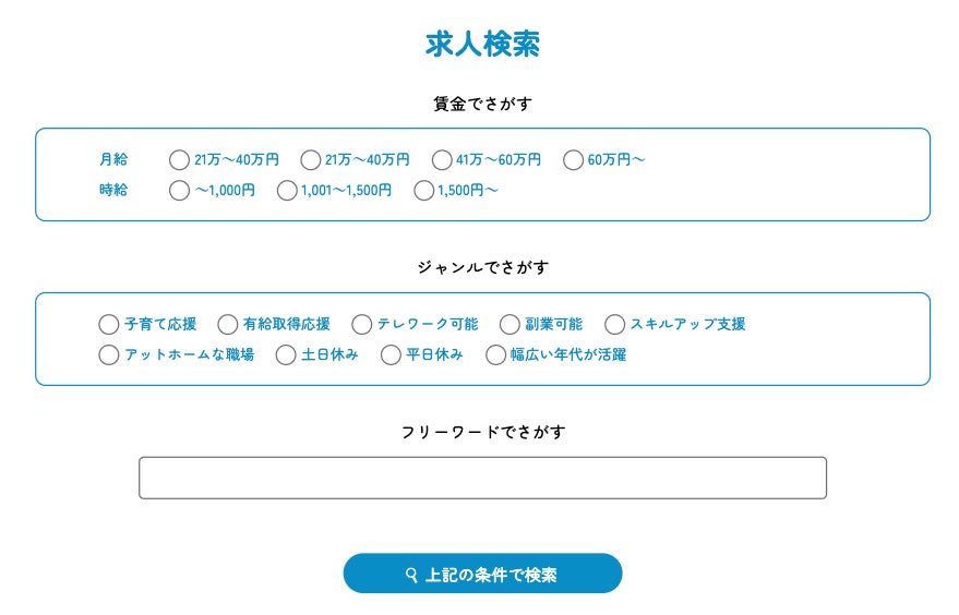 “顔が見える求人サイト”を目指し、企業・事業所が目指す姿や仕事のやりがい、社風など企業情報を幅広い視点で紹介。写真も多く掲載し、企業概要、求人要項の情報掲載にとどまらず、企業が自社の魅力を発信できる場、求人者が募集企業の理解を深める場となるよう設計しています。また職場特徴のジャンルや賃金など複数カテゴリでの検索機能も盛り込み、求職者がニーズに合う企業を見つけやすくしました。