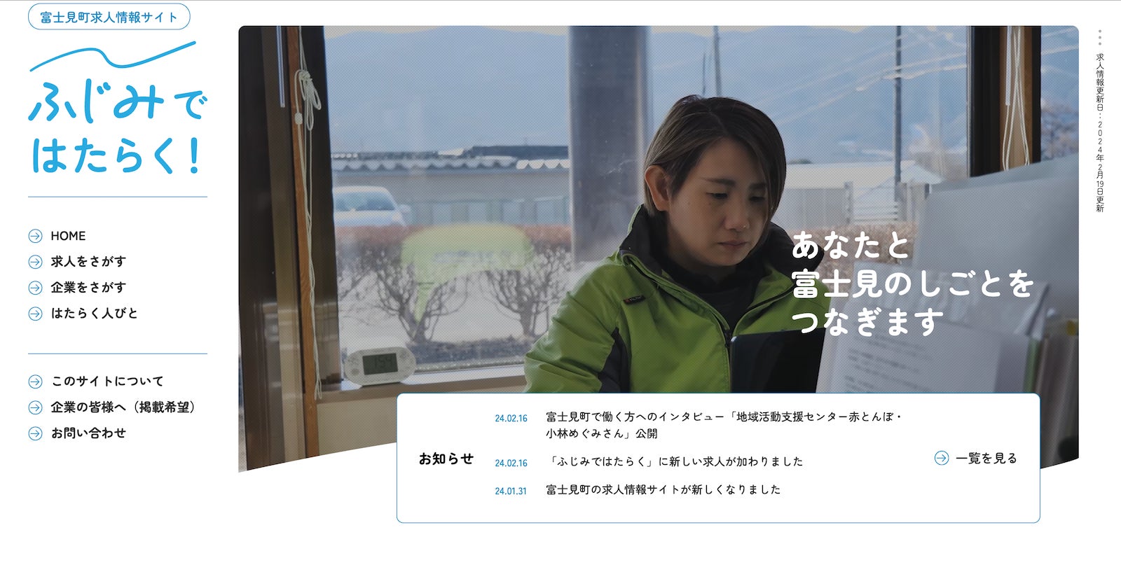 富士見町が求人情報サイト「ふじみではたらく」を新設、企業と求職者のニーズをつなぐ“顔の見える求人サイト”としてスタート