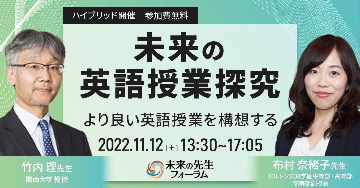 令和4年11月12日(土)13:30より未来の先生フォーラム マンスリーイベント「未来の英語授業探究―より良い英語授業を構想する―」を開催!
