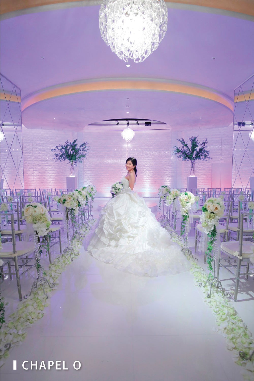噴水と緑に囲まれた幻想的なチャペルで愛する家族、大切な友人に囲まれて永遠の愛を誓う。