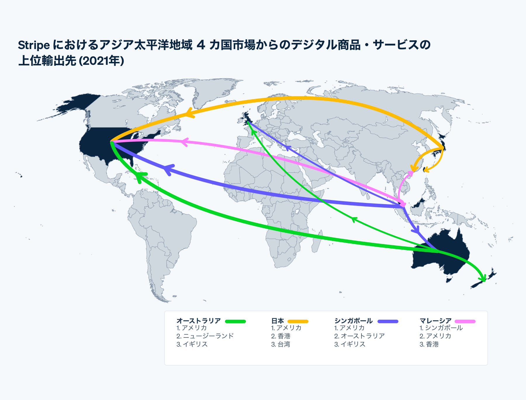 本レポートの詳細はこちら( https://go.stripe.global/rs/072-MDK-283/images/Digital_exports_are_remaking_trade_routes_in_Asia-Pacific-JP.pdf ) をご覧ください。