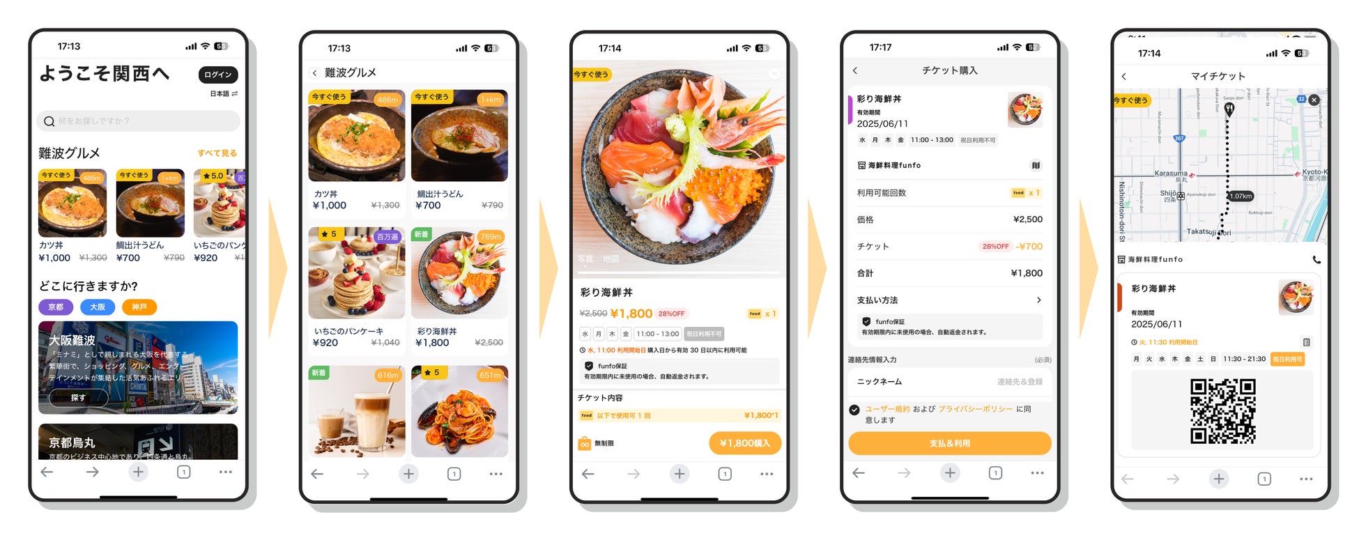 お店に着いたら、スタッフに伝え、チケットの QR コードを提示するだけで、食事を楽しむことができます。