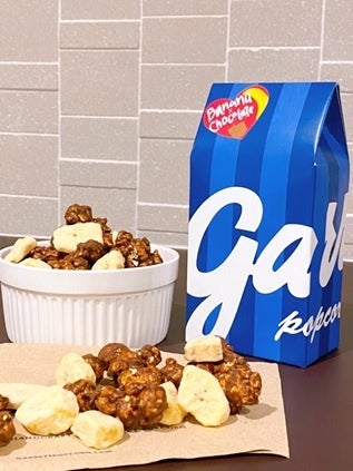 同時発売の『Garrett Treat(チョコココ×バナナチョコレート)』は、バナナとチョコレートの鉄板の組み合わせ。定番のシグニチャーストライプのBOXに、「チョコココ キャラメルクリスプ™」とバナナそのものの濃厚な甘さとねっとりとした食感が特徴の含浸バナナチョコレートを詰め込みました。