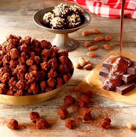 『アーモンド チョコレートトリュフ』は、「クラッシュアーモンド キャラメルクリスプ™」を甘いチョコレートでコーティングし、ビターなココアパウダーをたっぷりとまぶしたバレンタイン限定レシピです。口の中でとろけるなめらかなミルクチョコレートとほろ苦いココアパウダーの組み合わせに、アーモンドの香ばしさとつぶつぶとした食感をプラスしました。まるでトリュフチョコレートを食べているかのような、コク深く濃厚な味わいをご堪能ください。