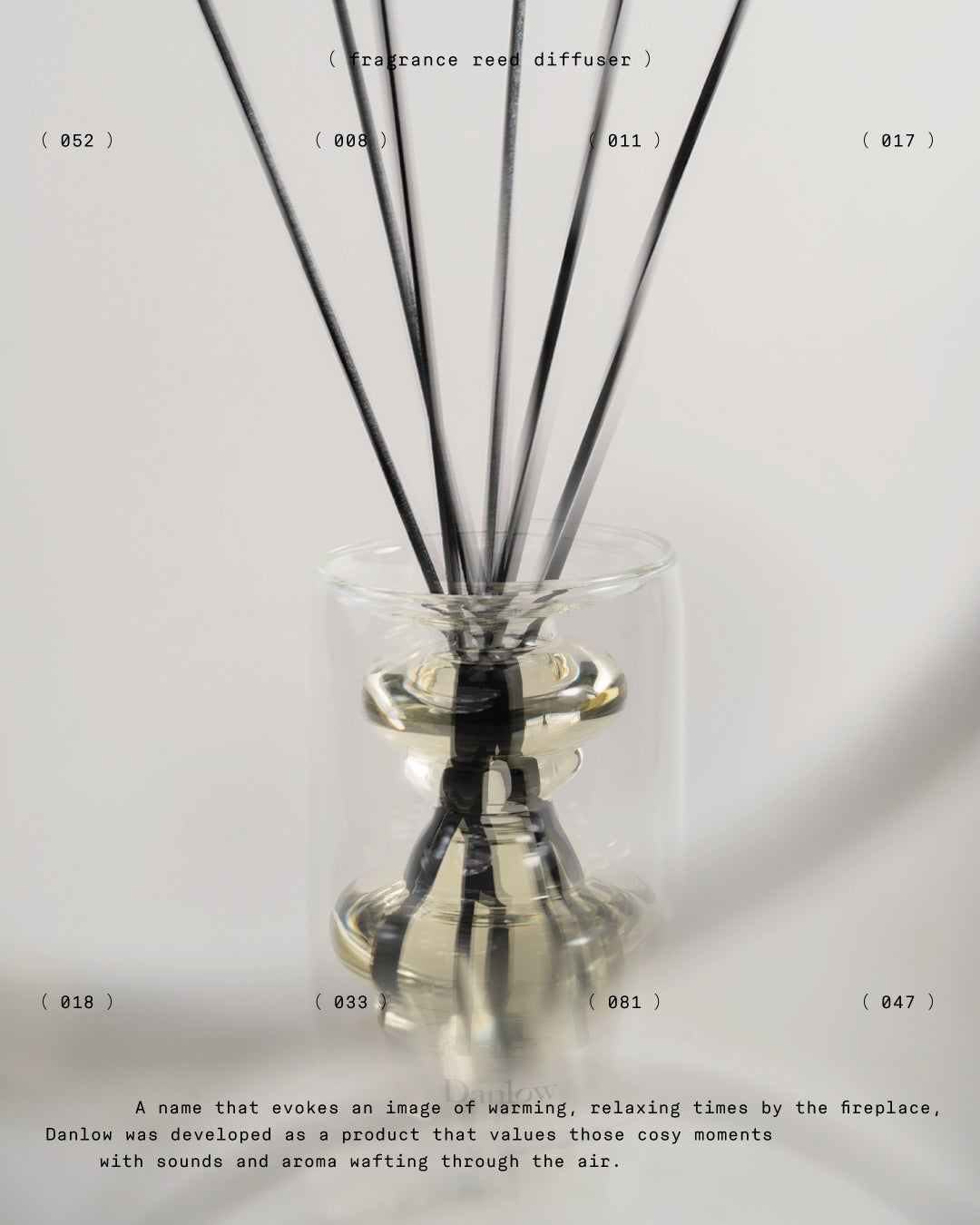 ディフューザーグラスとフレグランスボトル、リードがセットになったフレグランスリードディフューザー。二層に造形された象徴的なグラスは、柔らかく差し込む日差しや照明により、広がる芳醇な香りと共に様々な表情を魅せます。
