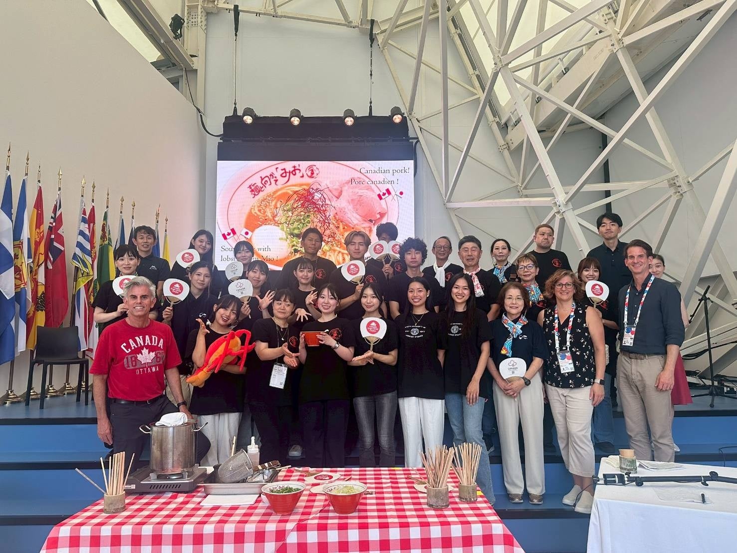 京都外国語大学と和歌山県美浜町三尾が共同開発した「みおラーメン」が大阪・関西万博のカナダパビリオンで試食会を開催