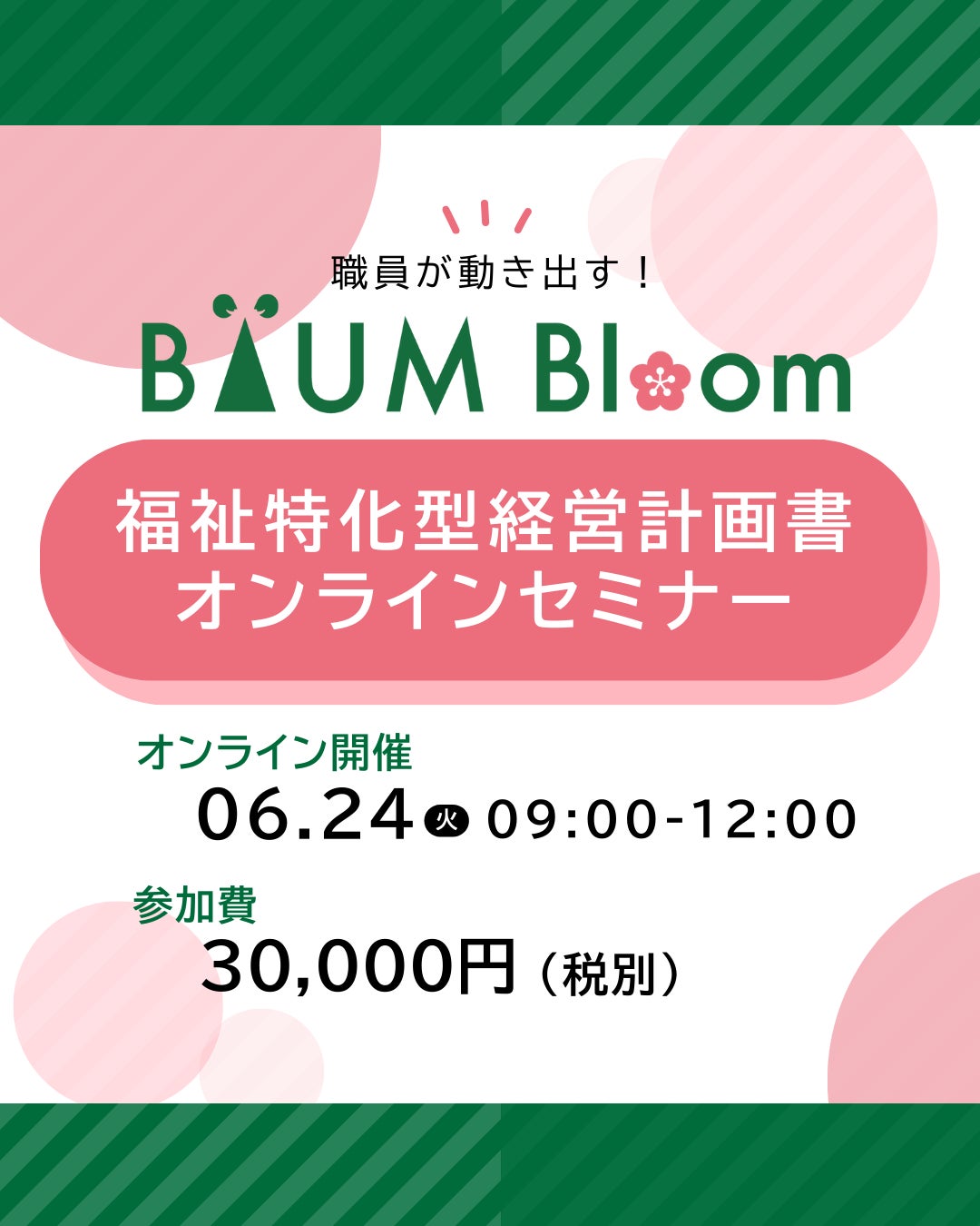 障がい福祉分野で30拠点の運営実績を持つ特定非営利活動法人バウムカウンセリングルーム(本部:愛知県名古屋市、理事長:笹谷寛道)は、福祉法人の経営者の方限定で、「福祉特化型経営計画書」の作成ノウハウを体系的に学べるオンラインセミナー(有料)を開催しています。