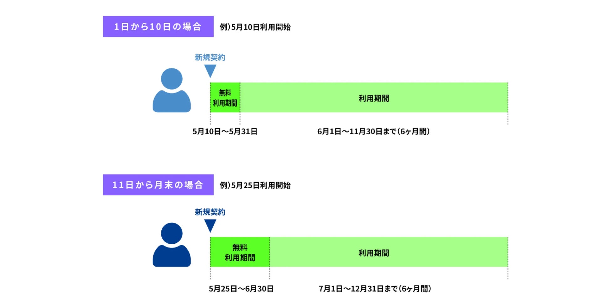 申し込み手続きはWEB完結し、最短当日より利用可能。無料利用期間の特典を用意。法人・個人問わずご購入いただけます。