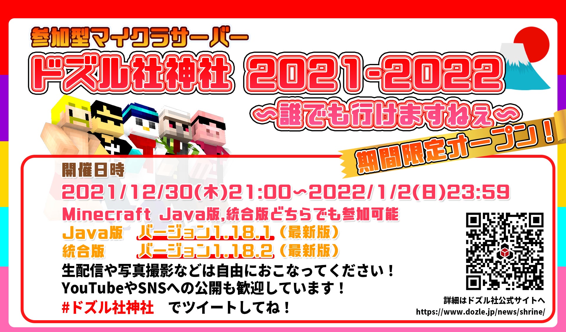メタバースの世界を体験!ゲーム『Minecraft』内にみんなで年越しや初詣ができる『ドズル社神社』を期間限定で無料オープン