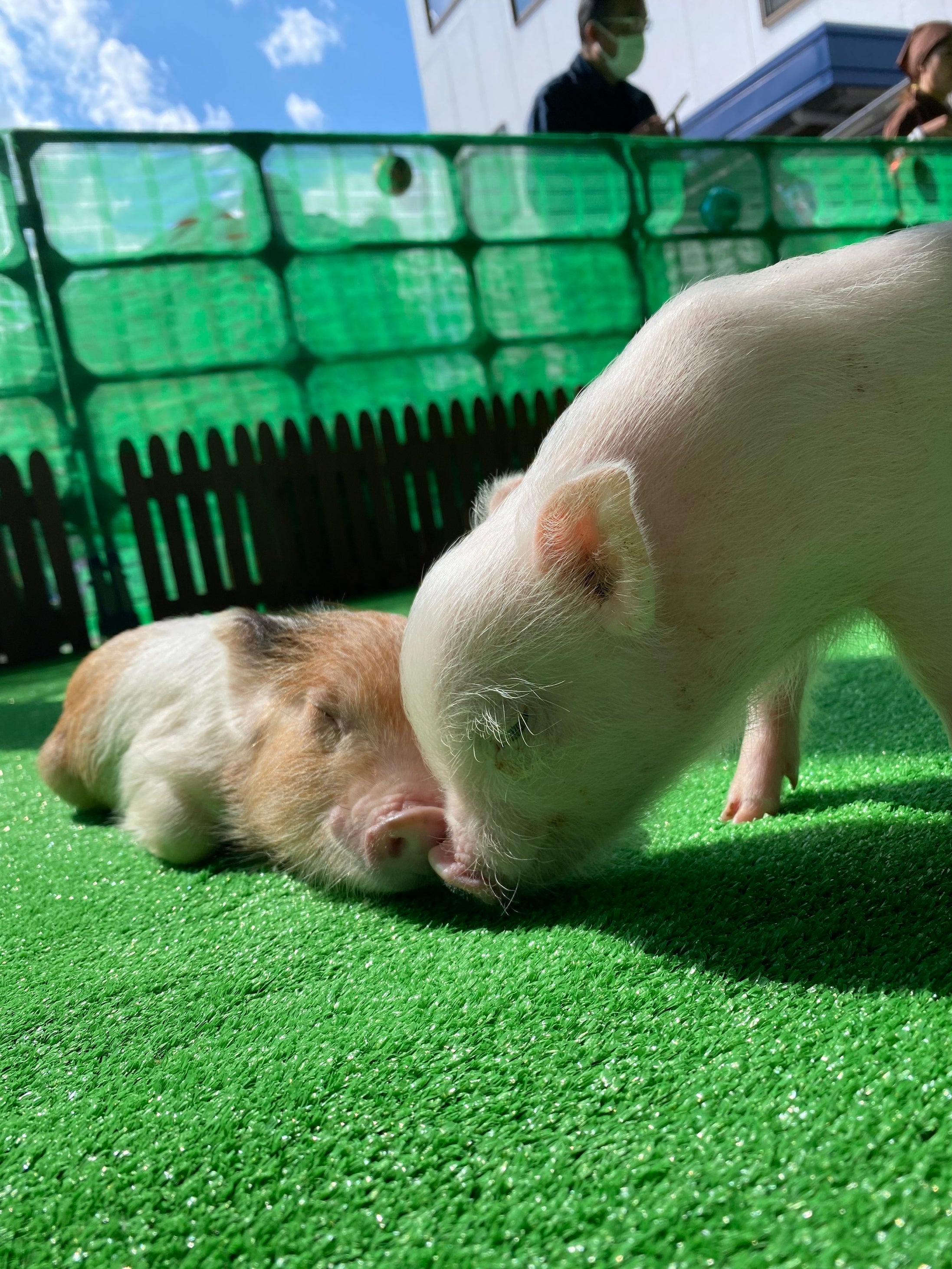 当店のpigちゃんたちは、pignic farmで人との触れ合いには慣れており、警戒する事なく触れ合うことができます。