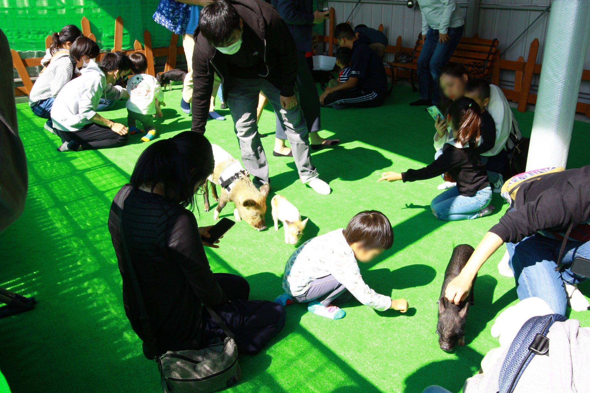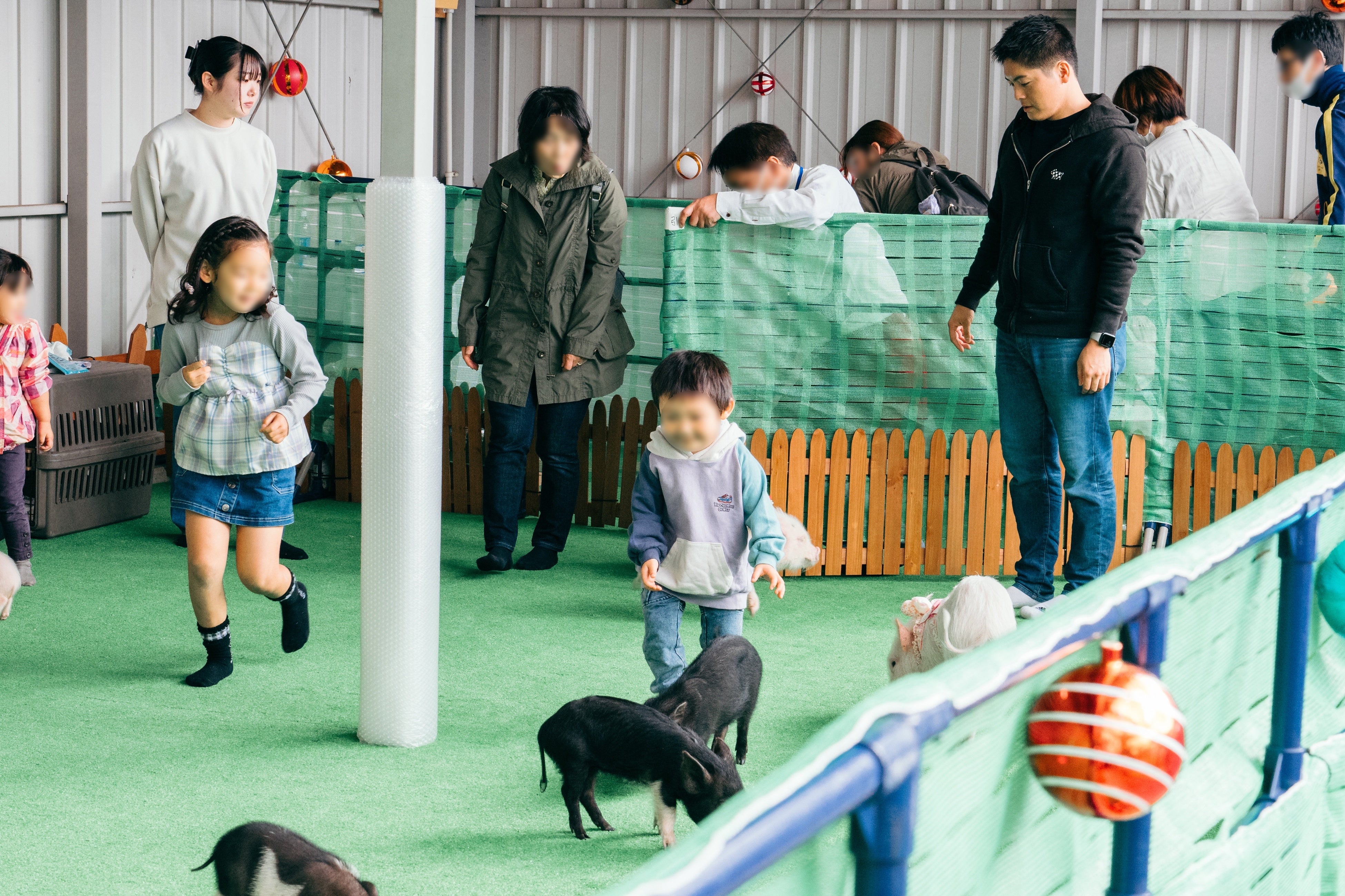イベントに参加した方々が頭を撫でたり、可愛らしいpigちゃんたちを見ながらお野菜あげ体験などをして楽しんでいただきました。