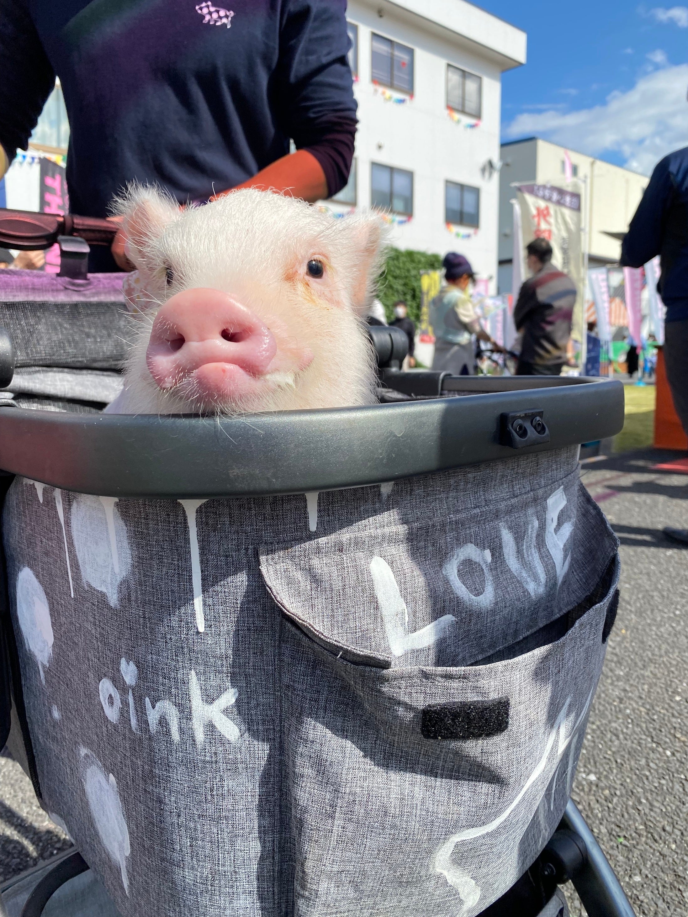 あきる野市にあるマイクロブタの体験型牧場pignic farm&cafeのpigちゃんがイベントに参加