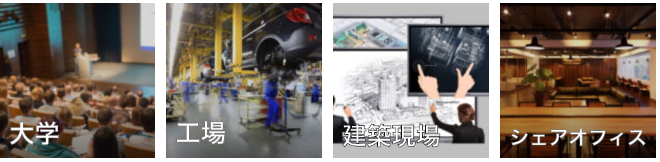 学校や学習塾での授業、企業でのWeb会議室、工場での工程管理、設計図面の確認、病院での掲示、シェアオフィス等