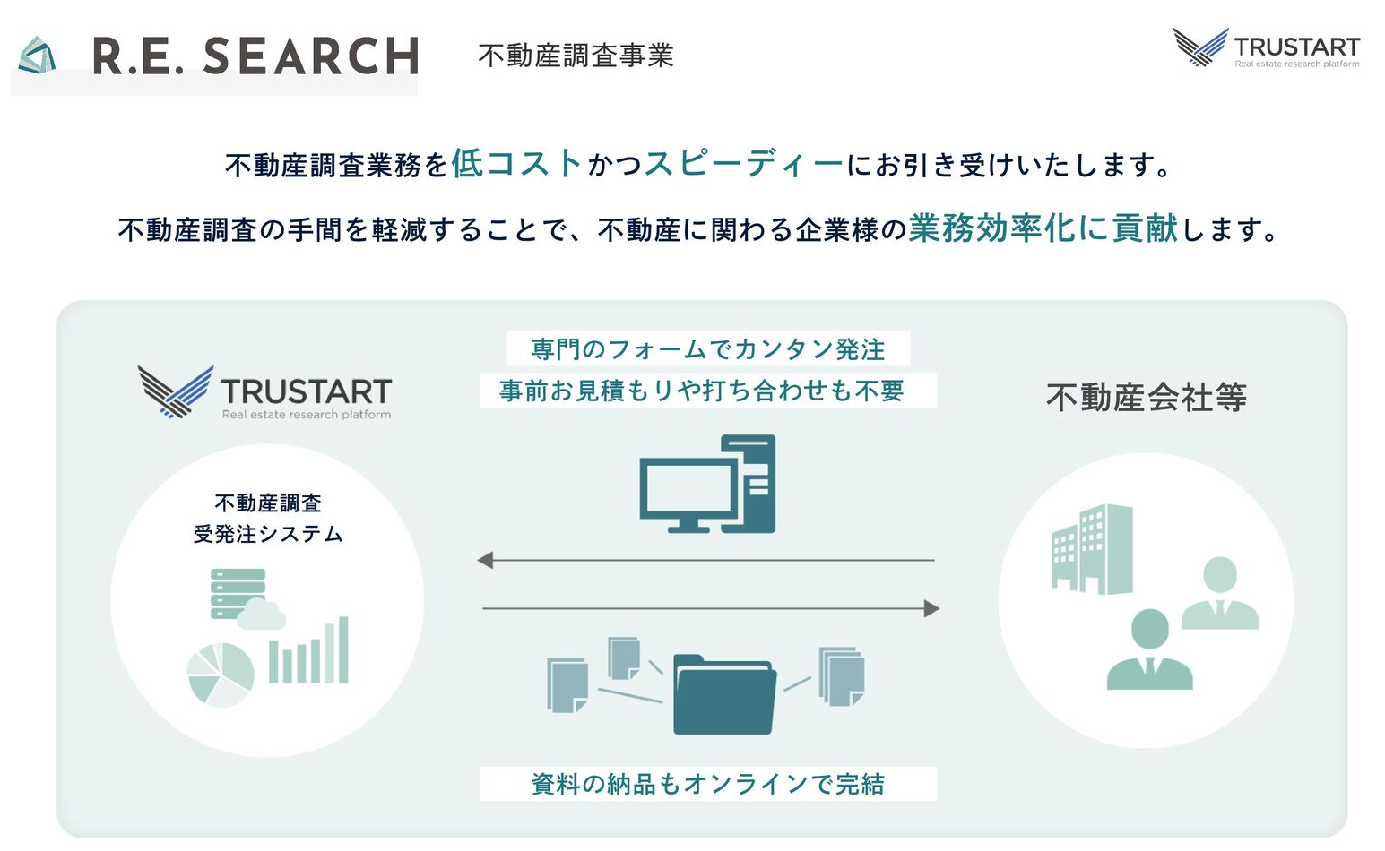 煩雑で時間のかかる不動産重要事項説明書作成業務を、低コストかつスピーディーに!!TRUSTART不動産調査サービス「重説アウトソーシング」をローンチ