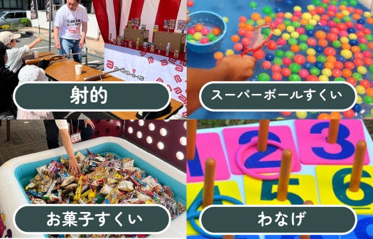 ·射的チャレンジ:人気No.1の定番コーナー!狙いを定めてお菓子をゲットしよう。