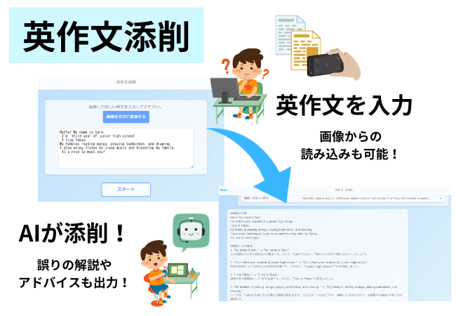 東京都立高校の一般入試では、英作文が例年出題されます。また、一般入試に先行し英語スピーキング試験があり、そして推薦入試では、面接入試が課されます。さらに、多くの私立高校での入試においても、面接試験があります。そのため、アウトプットの練習が必要とされていますが、多くの学校では人員不足から、これらの対策が十分に行われていないという声があります。そこで、株式会社みんがくと三井塾は、教育特化の生成AIサービス(スクールAI)を活用することで、アウトプットの練習量を増やし、生徒が自信をもって試験に臨める授業を開発し、公開することを発表しました。