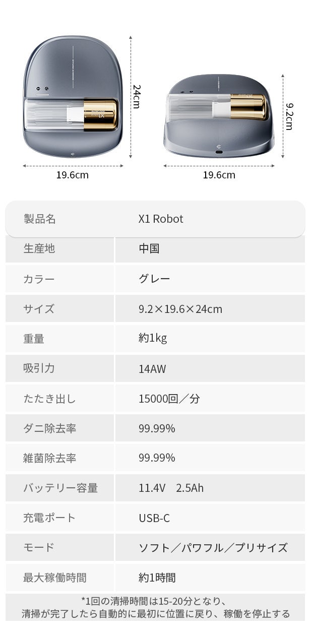 【新商品】毎日の家事を時短!強力吸引+高速たたき出し!全自動布団クリーナーX1 Robot