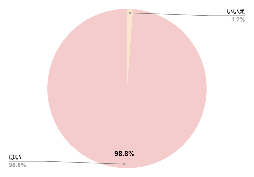 母乳パッドを使ったことがあると回答した方は98.8%で母乳育児をされている方の大半は利用されていることがわかります。